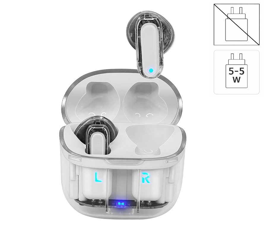 Diseño que marca la diferencia: compactos, ligeros y totalmente transparentes. Estos auriculares inalámbricos Bluetooth te permiten escuchar música o atender llamadas con estilo, mostrando sus circuitos interiores como símbolo de tecnología avanzada.